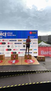 Sergi tot i perdre el xip de sabatilla i el mobil  en carrera i haver de parar més a lligar-se les sabatilles. entra en 36’46s