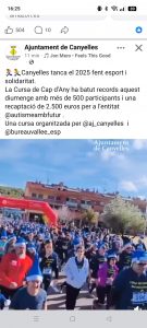 A la cursa solidaria envers l’autisme a Canyelles, en Sergi Vilella, entra guanyador de la prova i poc per darrere l’Albert en una meritòria 4-5 posició. Cursa no competitiva, però ja sabem com són aquestes curses. Uns 600 participant i sobre tot una recaptació de + 2500 E per la causa que avui demanava. A la mateixa cursa en Josep Rico fa una cursa progressiva i recuperant-se del seu llarg refredat (corra Josep corra que així no tens tos) !!! je je.